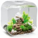 In principe geldt voor een aquarium: Hoe groter, hoe beter. Een groter aquarium biedt betere leefomstandigheden voor dieren en planten en op deze manier is de biologie in het aquarium eenvoudig in evenwicht te houden. Als richtlijn kunt u aanhouden dat één centimeter vis, 2 liter water nodig heeft. Laat u bij de aanschaf van vissen door de speciaalzaak adviseren op het gebied van de vissen, planten en omgeving. Als de grootte van het aquarium, de levende wezens en de beplanting optimaal op elkaar zijn afgestemd, ontstaat een goed functionerende biotoop met gezonde dieren waar u lang plezier van heeft.