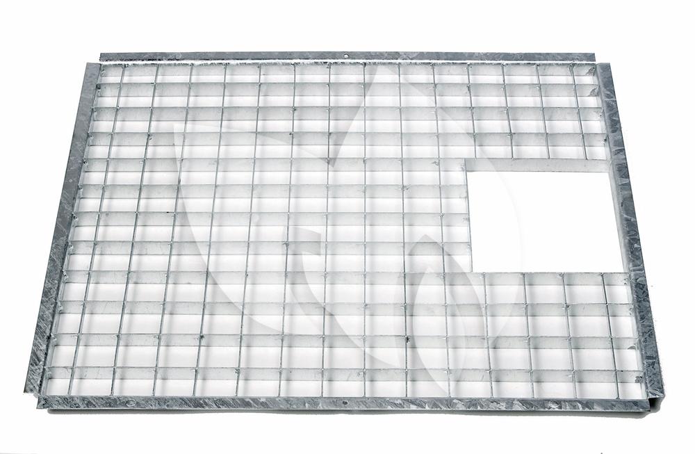 Het metalen afdekrooster is gemaakt van gegalvaniseerd staal in een rechthoekige vorm. Met het juiste bassin komt het afdekrooster op gelijke hoogte te liggen met de rand en kan hij met speciale klemmen op de rand worden vastgezet. Bij een gelijkmatige belasting kan het rooster een hoog gewicht tot een maximum van 150 kg dragen. Dankzij de rasteropening van 5 x 5 cm kunnen de slangen van het decoratieve element naar iedere positie worden geleid en door middel van de service opening is de vijverpomp altijd bereikbaar voor eventuele onderhoud. Om de service opening te dichten is er een afzonderlijk inzetstuk beschikbaar (niet inbegrepen). Het afdekrooster is verkrijgbaar in verschillende diameters.