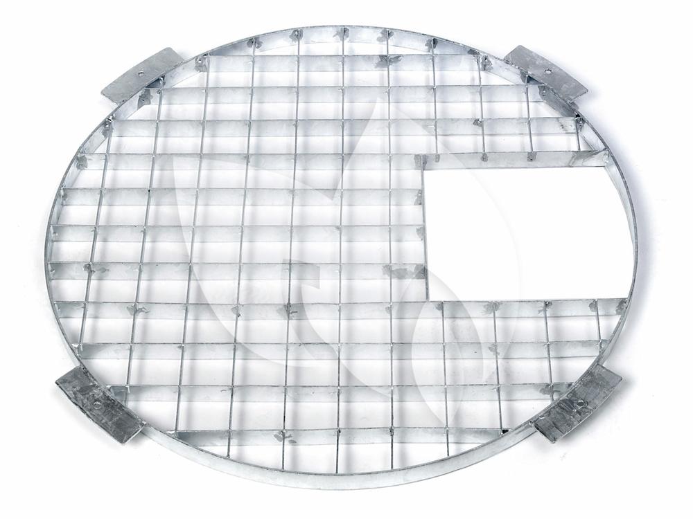 Het metalen afdekrooster is gemaakt van gegalvaniseerd staal in een ronde vorm. Met het juiste bassin komt het afdekrooster op gelijke hoogte te liggen met de rand en kan hij met speciale klemmen op de rand worden vastgezet. Bij een gelijkmatige belasting kan het rooster een hoog gewicht tot een maximum van 150 kg dragen. Dankzij de rasteropening van 5 x 5 cm kunnen de slangen van het decoratieve element naar iedere positie worden geleid en door middel van de service opening is de vijverpomp altijd bereikbaar voor eventuele onderhoud. Om de service opening te dichten is er een afzonderlijk inzetstuk beschikbaar (niet inbegrepen). Het afdekrooster is verkrijgbaar in verschillende diameters.