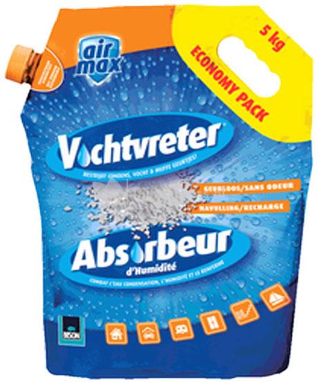 Door de actieve hygroscopische kristallen wordt een te hoge luchtvochtigheid in (gesloten) ruimtes met weinig tot geen ventilatie verlaagd. De Air Max vochtvreter navulling stazak is geschikt voor de Air Max vochtvreters en kan door zijn hersluitbare schenktuit weer worden afgesloten. Een vochtvreter is geschikt voor afgesloten ruimtes als een caravan, zolder, schuur, meterkast, kelder etc.