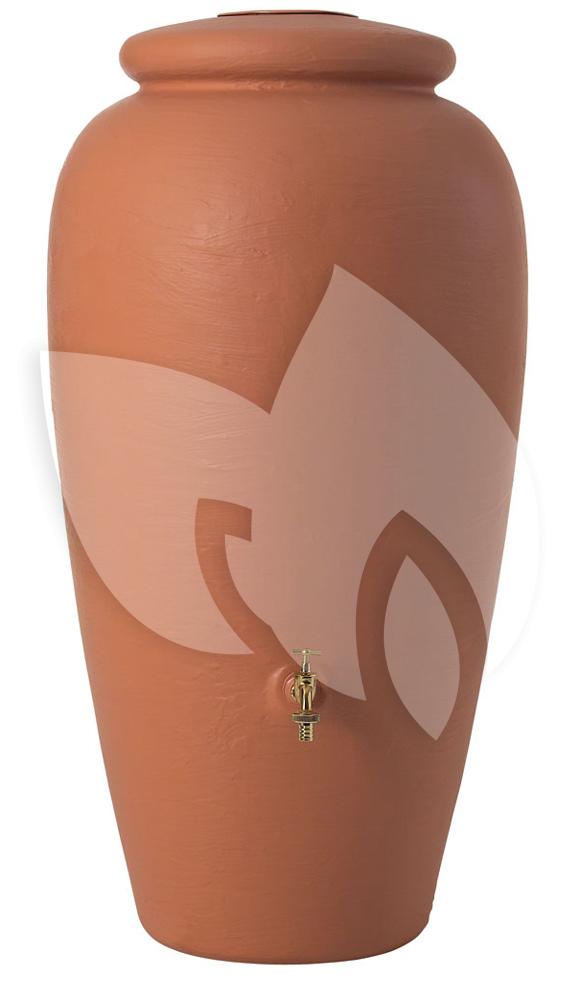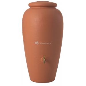 De Amphore regenton is een design regenton van het merk Garantia die dankzij zijn vormgeving en terracotta kleur een unieke uitstraling heeft verkregen. De regenton is vervaardigd uit stevig kunststof, wat de kwaliteit en levensduur van de ton ten goede komt. De aftapkraan is op een perfecte hoogte geplaatst zodat u een gieter of emmer eronder kunt plaatsen en het water gemakkelijk kunt aftappen. De waterton wordt geleverd inclusief bijpassende messing kraan en is ook verkrijgbaar in een grotere variant met een inhoud van 500 liter.