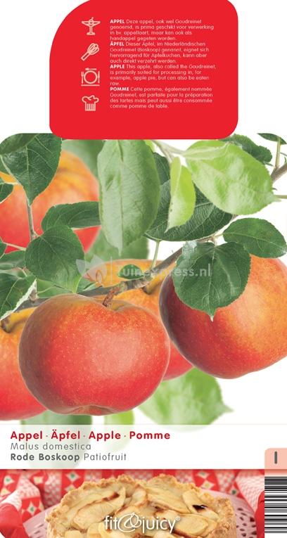 De Rode Boskoop staat ook wel bekend als de Goudreinet. Het is een zeer populaire appel voor het maken van appeltaarten. De rode appel heeft een wat stroeve schil en is friszuur van smaak. De Rode Boskoop is geen zelfbestuivende appelboom, om tot vruchten te komen is het dus belangrijk een tweede appelboom te plaatsen.