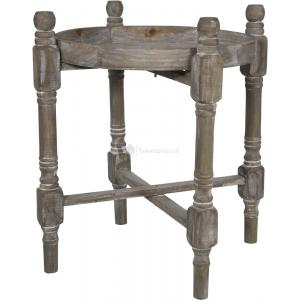 Dit sfeervolle ronde bijzettafeltje heeft een bijzondere look. Met behulp van het bijzettafeltje verandert u een saaie hoek in een mum van tijd in een interessante hoek met verschillende groene planten of andere decoratie artikelen. Het donkere hout is afgewerkt met een whitewash wat het tafeltje doet leven. Heeft u klassiekere meubelen, dan past dit bijzettafeltje hier zeker tussen.