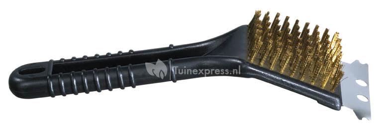 Handige kunststof 2-in-1 borstel voor het eenvoudig reinigen van hardnekkige en aangekoekte resten op een grillrooster of grillplaat.