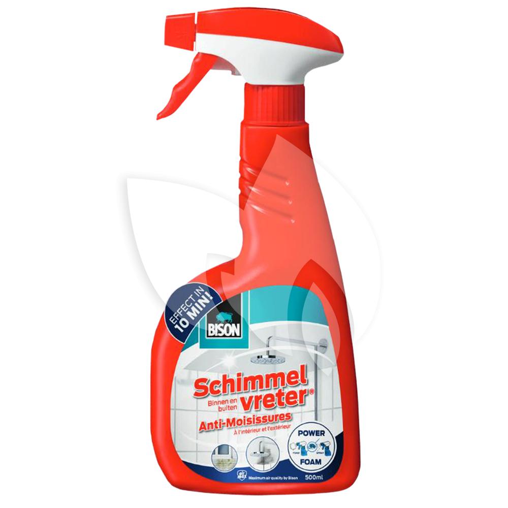 Schimmelvreter werkt snel en efficiënt tegen schimmel en algen op wanden, vloeren en voegen, zowel binnen als buiten. Deze flacon met spray en schuim is geschikt voor lastig bereikbare hoekjes, grotere oppervlakken, alsook hardnekkige vlekken. Met een snel resultaat in 10 minuten.