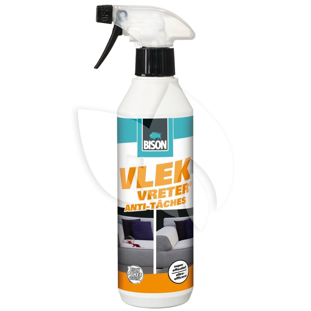 Bison Vlekvreter is een spray voor het voor het eenvoudig reinigen van vlekken in textiel en bekleding en bestrijdt hardnekkige vlekken zoals rode wijn, koffie, chocolade en schoensmeer.