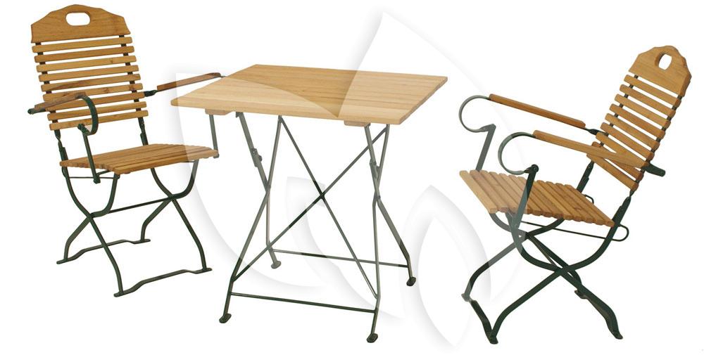 Hardhouten Bistroset met armleuning 70 x 70 cm en groen metalen frame