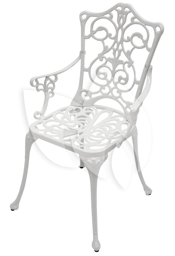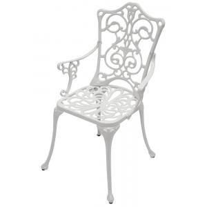 De Bistrostoel Antiek met armleuningen - wit is een klassieke stoel gemaakt van gietaluminium met een gecoate witte laag. Gietaluminium is vrijwel onderhoudsvrij en dat maakt dit een ideale stoel voor in de tuin of terras. Heb je een extra stoel nodig voor de Bistroset Antiek, dan is dit de stoel die je zoekt.