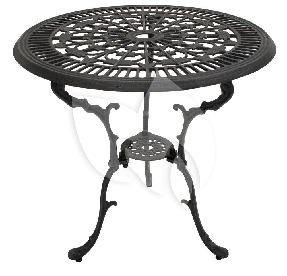 De Bistrotafel Antiek ⌀ 70 cm - antraciet is een prachtige klassieke tafel geschikt voor buitengebruik. Door de gecoate laag over het gietaluminium is deze bistrotafel onderhoudsvriendelijk. Onder de tafelpoten zitten rubberen doppen voor stabiliteit maar ook om beschadigingen zoals krassen op de terrastegel te voorkomen. Te combineren met de Bistrostoel Antiek.
