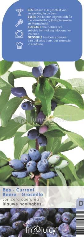 De blauwe honingbes, ook wel bekend als de Siberische honingbes, krijgt opvallende ovaalvormige bessen. De bessen zijn rijk aan vitamine B en C en zijn fris zoetzuur van smaak. De blauwe honingbes is zelfbestuivend. Wanneer u er meerdere plant zal dit van positieve invloed zijn op de opbrengst. De plant wordt tot ongeveer 1,5m hoog en daarmee ook zeer geschikt als vruchtdragende haag.