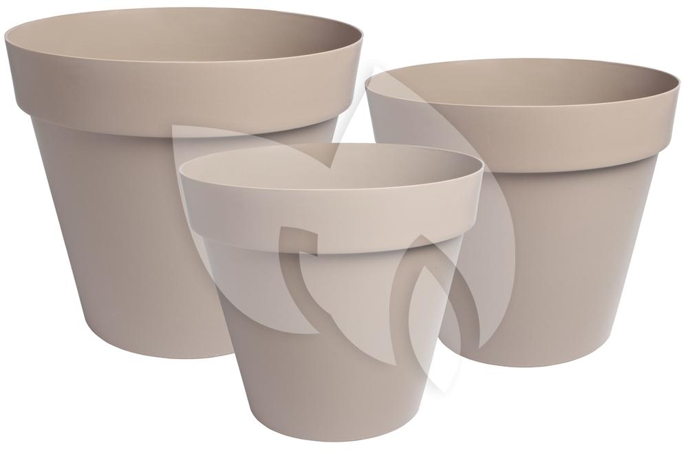 Creëer een speels effect in uw tuin met deze drie bloembakken Fiore ecru. De set bestaat uit drie bloembakken die elk verschillende afmetingen hebben. Deze verschillen in afmetingen geven het geheel een leuke uitstraling. De bloembakken zijn allen gemaakt van het materiaal polypropeen waardoor de bloembakken erg stevig zijn. Polypropeen is een vrijwel onbreekbaar plastic en het materiaal is geschikt om het gehele jaar door buiten te staan.