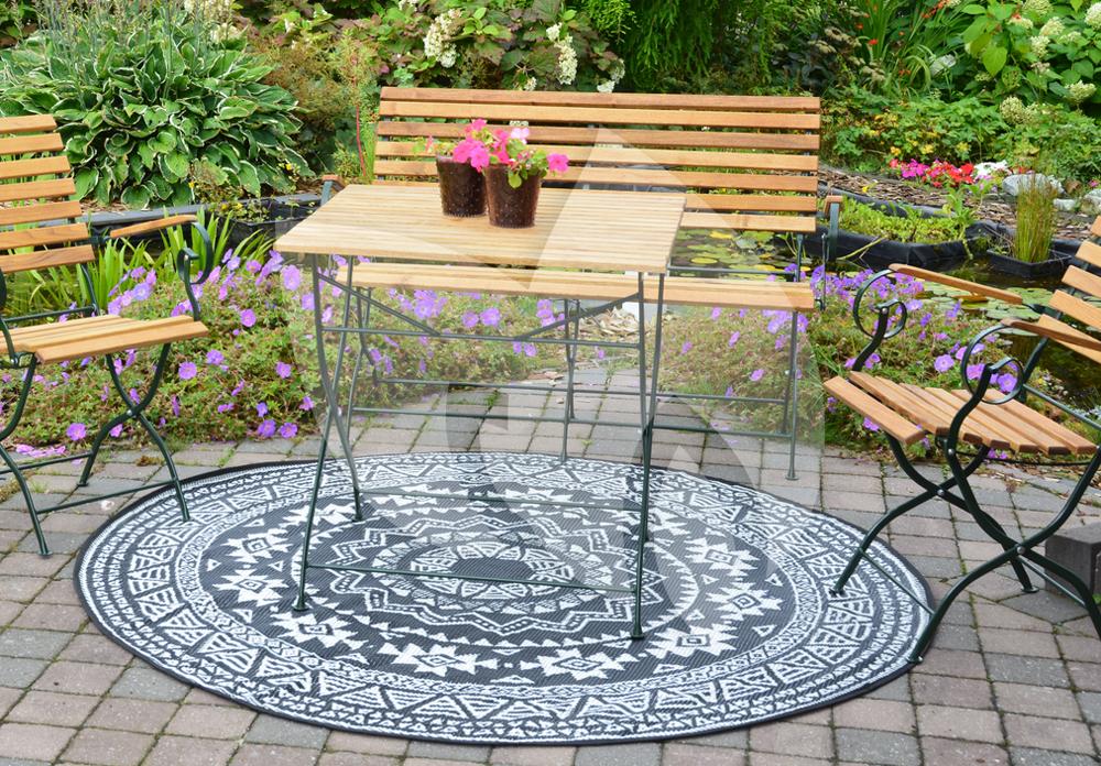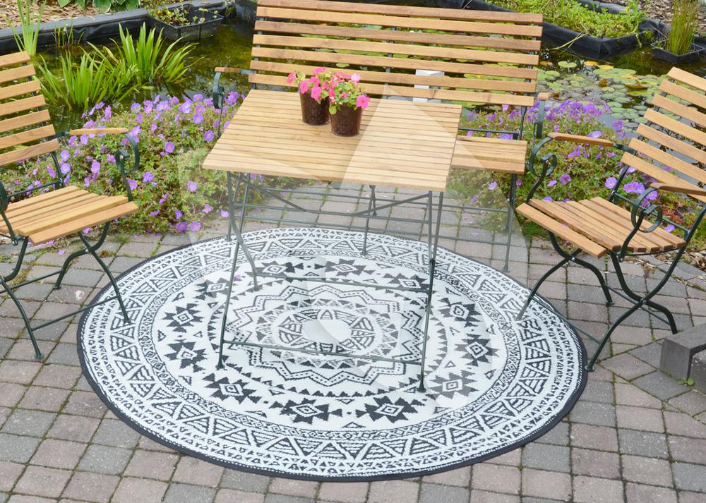 Het materiaal is waterdoorlatend waardoor het op ieder vlak oppervlakte te plaatsen is. Ook niet onbelangrijk; buitenkleed Aztek voelt prima aan uw blote voeten!