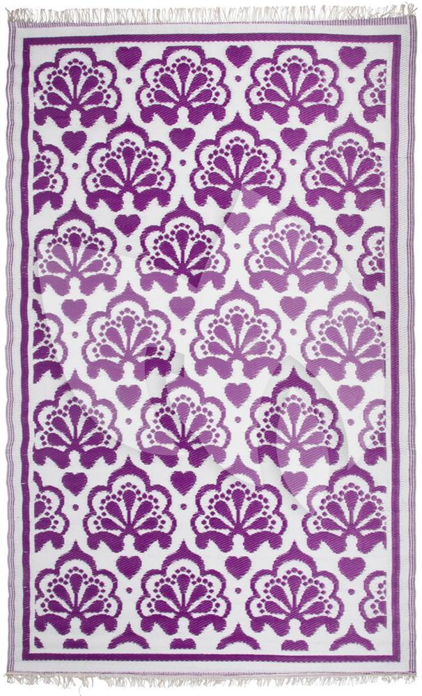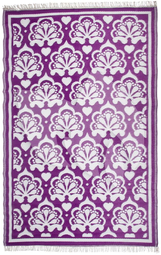 Buitenkleed Boho heeft een uitbundige look en past daarmee perfect in een bohemian buiteninrichting. Gekleurde accessoires maken een tuinset een stuk gedurfder, het tuintapijt Boho levert hier graag een bijdrage aan. Het kleed, voorzien van franjes, is omkeerbaar en dus aan beide zijden te gebruiken. Aan de ene zijde overheerst paars, de andere zijde wordt gedomineerd door wit.