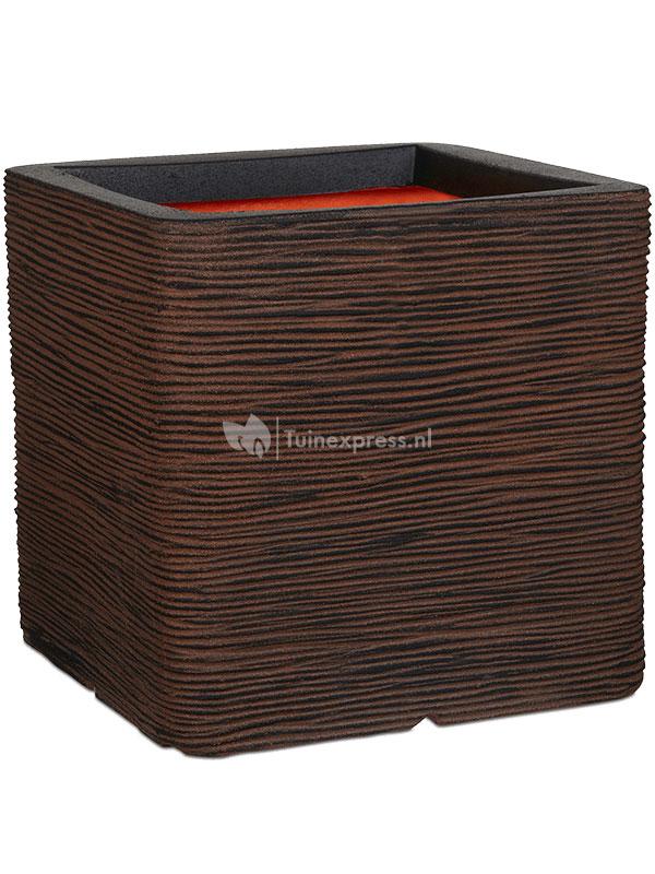 Capi Nature Rib NL 40x40x40cm vierkante plantenbak donkerbruin
