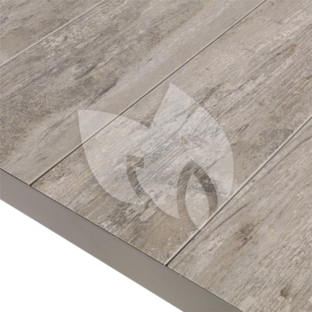 Deze stijlvolle tuintafel heeft een taupekleurig frame met een houtkleurig keramiek tafelblad. Deze robuuste tafel is rond afgewerkt waardoor de tafel een zachte uitstraling krijgt. De Castilla tuintafel is een typische tafel die in iedere tuin geplaatst kan worden, er is geen sfeer die hij karakteriseert. De tafel biedt plaats aan maar liefst 6 personen of zelfs 8 wanneer u ook de hoofdeinden benut. Bent u op zoek naar een eenvoudig te combineren tuintafel mét mooie looks, dan is de Castillo tuintafel zeer zeker geschikt voor u!