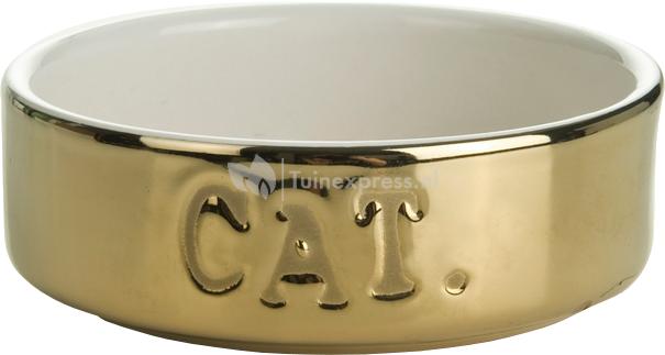 Cat keramieke eetbak Een modieuze keramieke ronde eet of drinkbak, welke zeker opvallend is door de goudkleur. Specificaties: