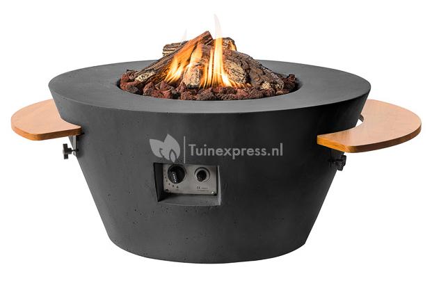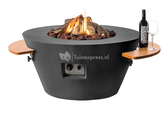 Deze ronde Cocoon vuurtafel wordt geleverd inclusief lava stenen, 4 houten stammen, 2.5 meter lange gasslang en PVC beschermhoes. Een 30 mBar gasdrukregelaar wordt er niet standaard bijgeleverd en zult u net als een gasfles zelf nog moeten aanschaffen. De vuurtafel is ook verkrijgbaar in de kleuren antraciet en taupe. Maak het gebruik van de terrashaard nog leuker door er side tables en een grillplaat aan toe te voegen! En bent u het beu dat de gasfles zo in het zich staat? De bijzettafel is daarvoor een ideale oplossing!