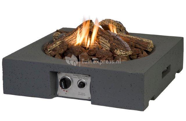 De table top is voorzien van een ingebouwde gashaard met een fijn loungevuur. Dankzij de hedendaagse techniek is het tafelmodel veilig in gebruik, aangezien het een haardvuur is zonder enige rook of rondspringende vonken. Wanneer u de tafelhaard heeft aangesloten op een gasfles, steekt u met één druk op de knop de brander elektronisch aan. Een mooi vuur ontwaakt waarbij de hoogte van de vlammen traploos is te regelen. De krachtige brander valt dankzij zijn camouflage van lavastenen en houtblokken haast niet op en zorgt ervoor dat de directe omgeving snel op temperatuur is.