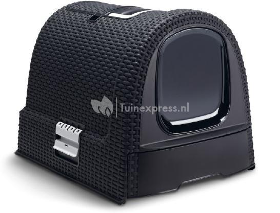 Een schitterend uitziende design kattentoilet van het merk Curver. Dit kattentoilet is van het oersterke materiaal Rattan, gemaakt van een hoogwaardig gevlochten kunststof. Voorzien van een plateau met gaatjes wat er voor dient, dat wanneer uw kat van het toilet komt, hij of zij een deel van het kattengrit onder de poten al kwijt is. Tevens een handige uitschuifbare lade, zodat u in een oogopslag kunt zien of het kattentoilet al aan verschoning toe is. Een aanwinst voor elk interieur. Kleur: antraciet.
