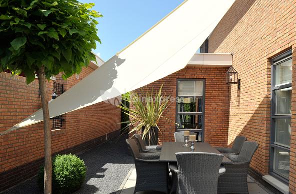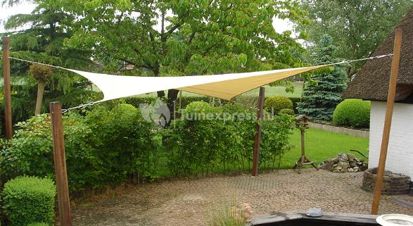 Geniet van een aangename schaduwplek onder het Dreamsail waterafstotend schaduwdoek creme op de warmste dagen van het jaar. Tevens bent u onder het schaduwdoek beschermd tegen kleine regenbuien. Door het fijne polyester weefsel van het schaduwdoek is het doek waterafstotend en kunt u zonder problemen buiten blijven zitten tijdens een kleine regenbui. Let er bij de bevestiging wel op dat het water van het doek af moet kunnen lopen. Hang het schaduwdoek op met een afschot van minimaal 30 graden zodat het water direct afgevoerd kan worden. Het bevestigingsmateriaal wordt niet meegeleverd, dit materiaal is los verkrijgbaar in onze webshop.