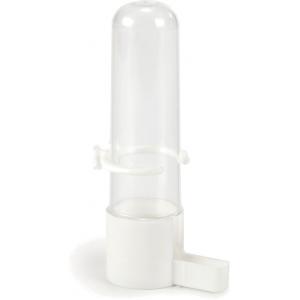 Een plastic drink en voederfontein groot, staafmodel, voor diverse vogelkooien. Kleur: wit, transparant.