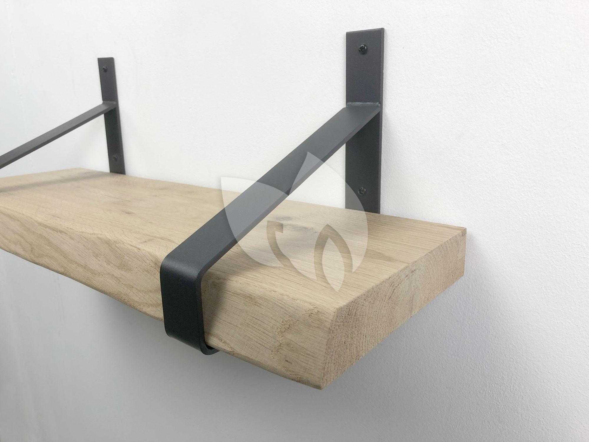 Eiken wandplank boomkant 50 cm in 25 cm diepe plankdragers