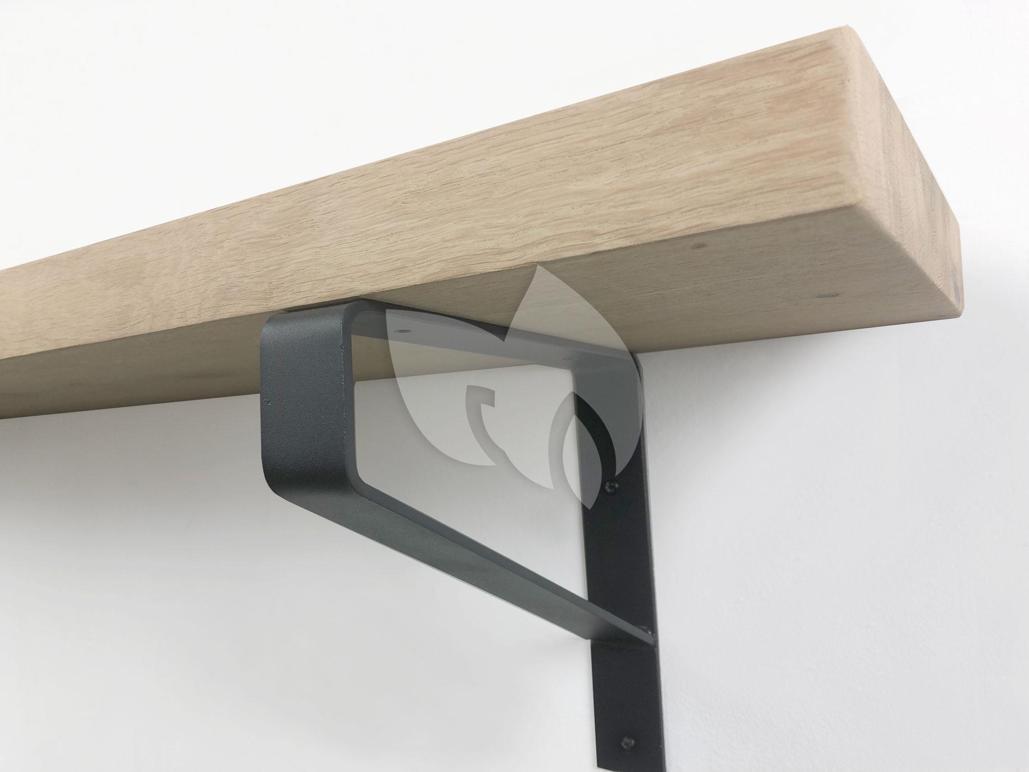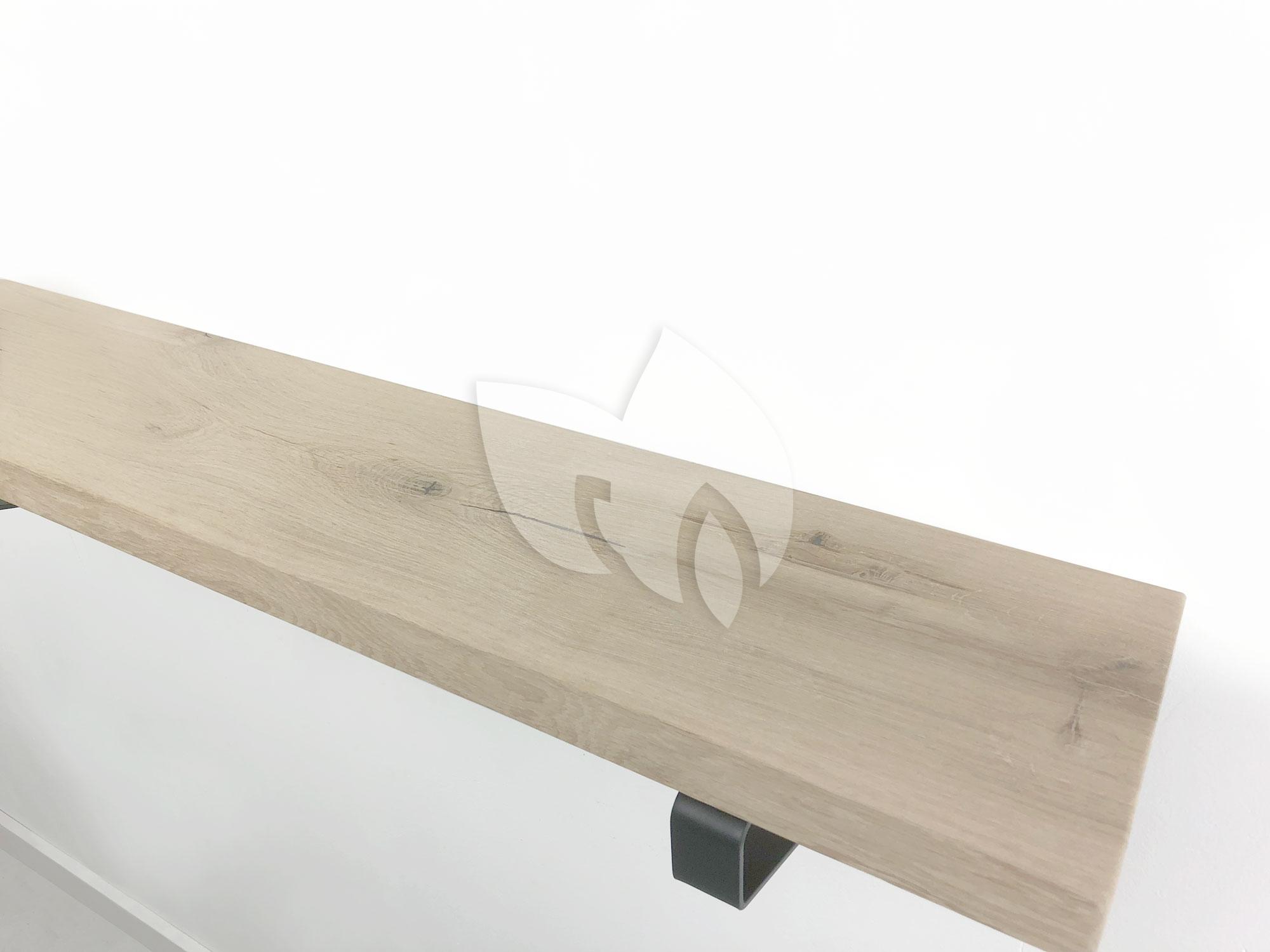 Eiken wandplank massief recht 120 cm op 20 cm diepe plankdragers