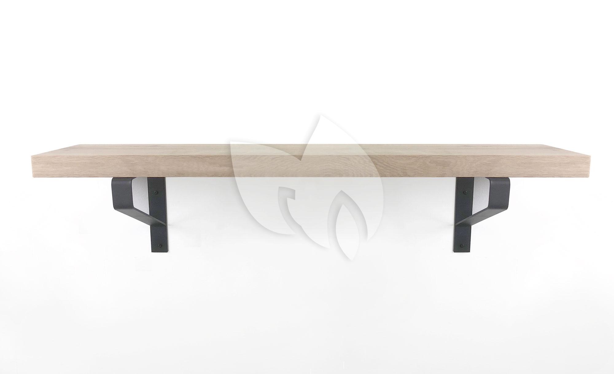 Eiken wandplank massief recht 120 cm op 25 cm diepe plankdragers