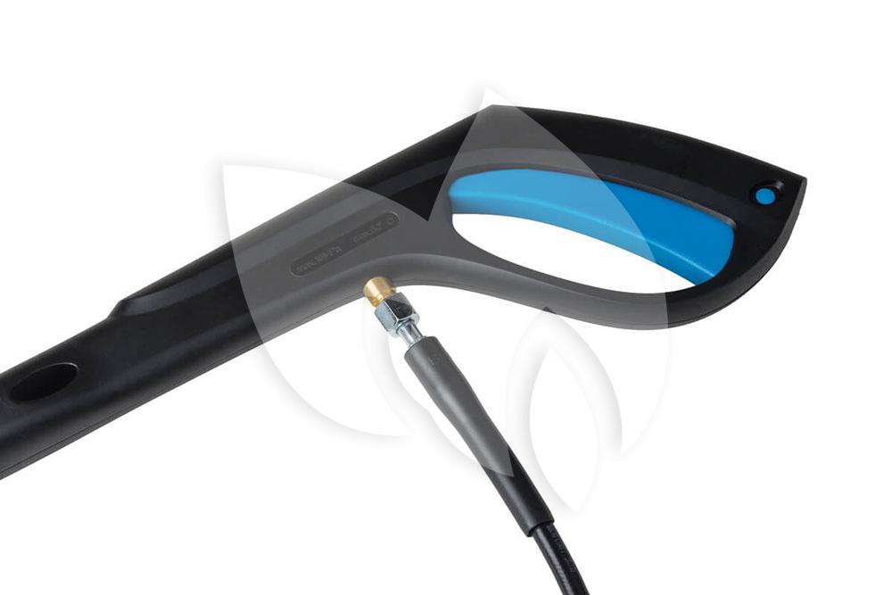 De automatische start/stop knop in combinatie met de veiligheidsknop zorgt ervoor dat de terrasreiniger veilig in gebruik is. De hogedrukreiniger is namelijk alleen te gebruiken wanneer de hendel ingedrukt is, zodra de hendel wordt losgelaten slaat de motor af. De hogedrukreiniger is eenvoudig te verplaatsen en op te bergen dankzij het haspel bovenop en vanwege het trolleymodel.