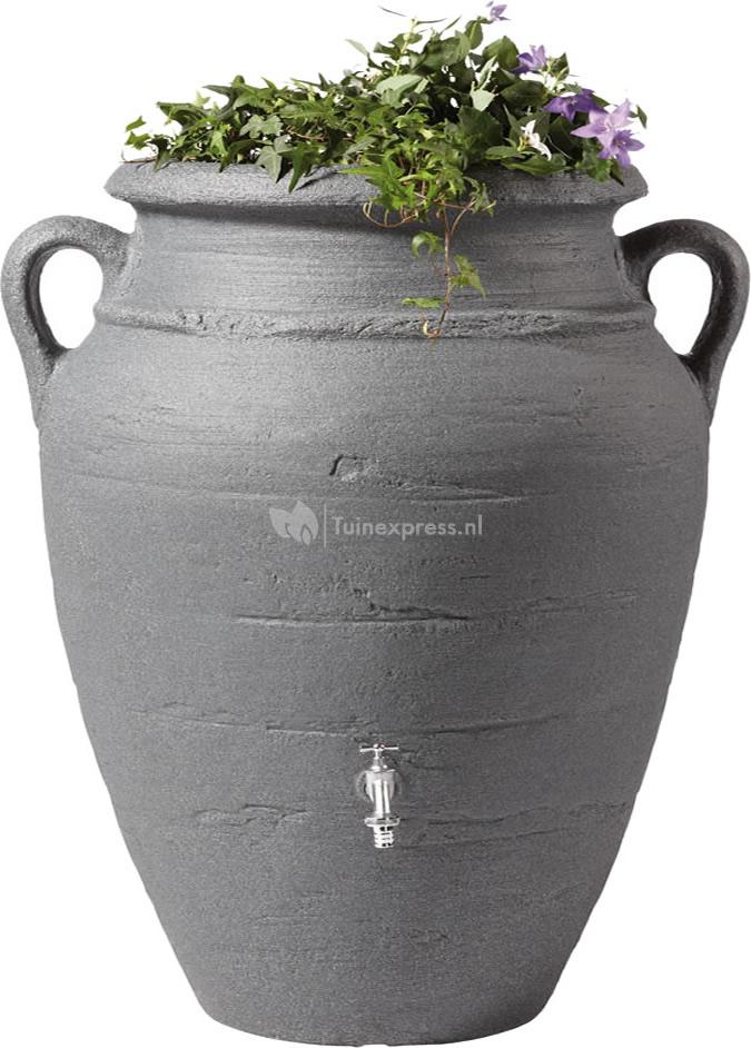 Een regenton die in iedere tuin een unieke sfeer zal toevoegen, dat is de Amphore regenton van Garantia! Deze regenton zorgt namelijk niet voor een opslag voor regenwater, maar is tevens aan de bovenkant voorzien van een leuke plantenbak. Dankzij zijn prachtige vormgeving met een structuur die op elke ton weer anders is en de mogelijkheid om de plantenbak geheel naar eigen wensen samen te stellen, wordt de decoratieve regenton voor iedereen een persoonlijk exemplaar. Een prachtig mooi aanzicht in de tuin is gegarandeerd!