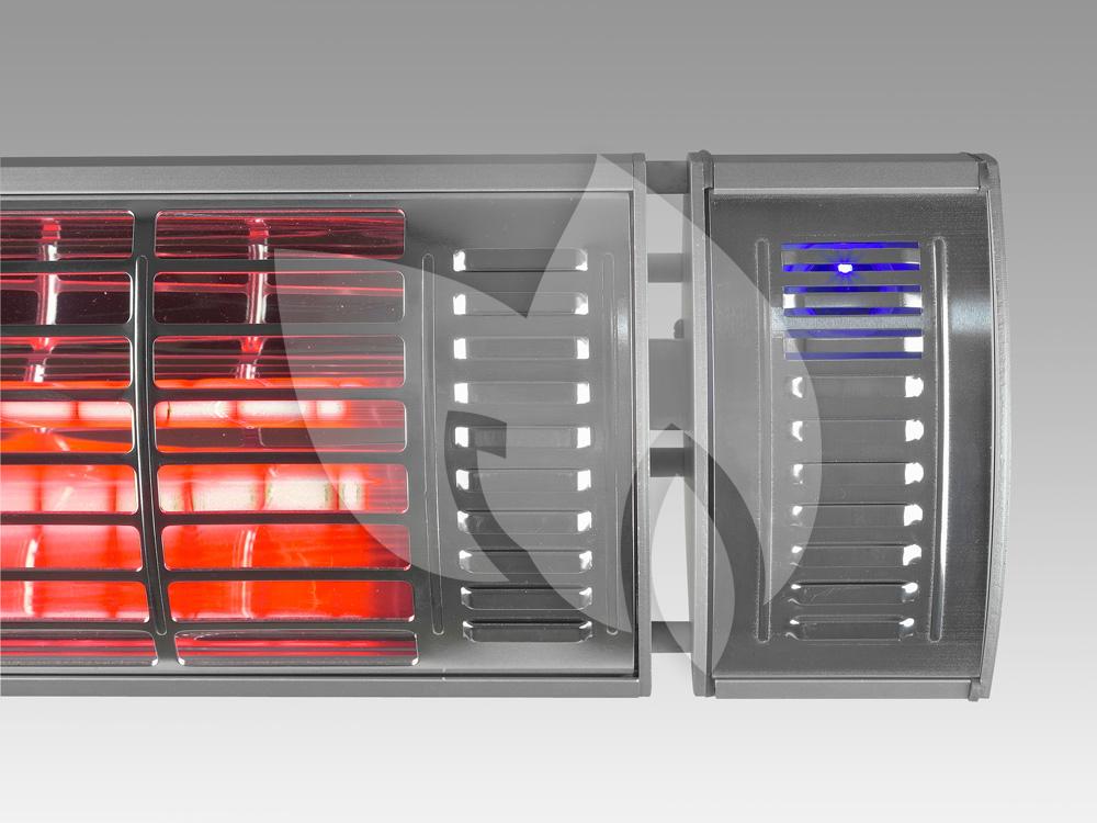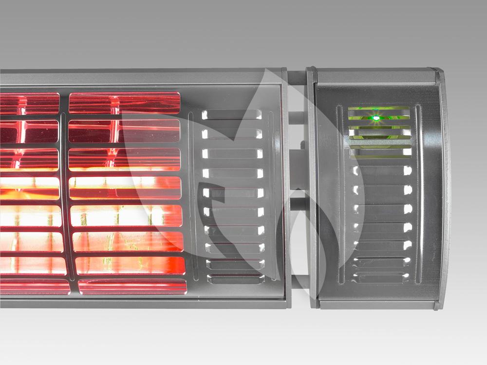 De Golden 2000 Ultra RCD terrasverwarmer warmt dankzij de infraroodstraling niet de lucht in de omgeving op, maar juist de personen die in het bereik van de lamp zitten. De speciale golden tube lamp heeft een levensverwachting van 8000 branduren waarbij hij veel warmte afgeeft en zeer weinig licht. De extra reflector zorgt voor een betere warmte weerkaatsing waarbij de warmte nauwelijks verwaait en er dus geen warmte verloren gaat door de wind. De terrasverwarmer is verticaal 100º draaibaar, zo kunt u hem in de juiste hoek plaatsen en de warmte gericht afstemmen. De terrasverwarmer is volledig stof- en spuitwaterdicht waardoor u hem het hele jaar door buiten kunt laten hangen.