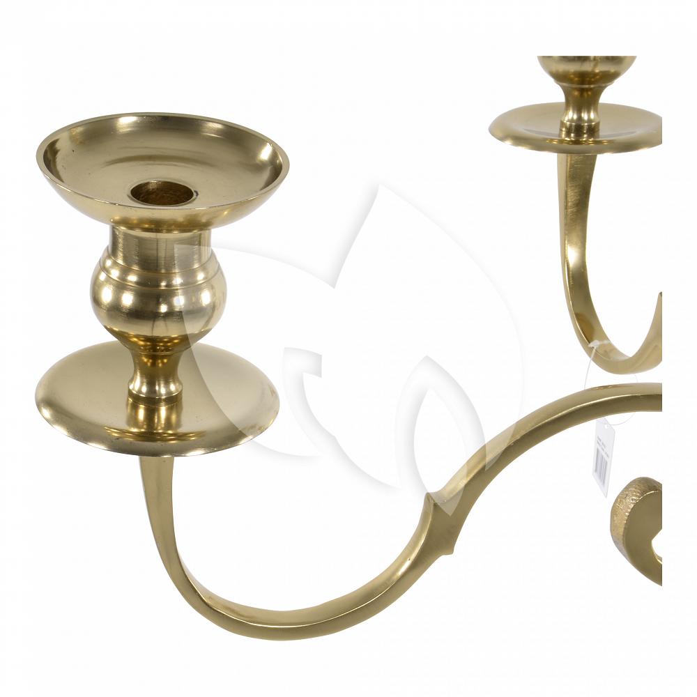 Deze mooie grote gouden kandelaar is een ideaal decoratiestuk voor in huis. Hij is geschikt om 5 dinerkaarsen in te steken hierdoor krijg je een intents lichteffect wat zorgt voor een fantastische sfeer, vooral aan de eettafel tijdens de donkere dagen. Verder heeft de kandelaar een warm uiterlijk door zijn gouden kleur.