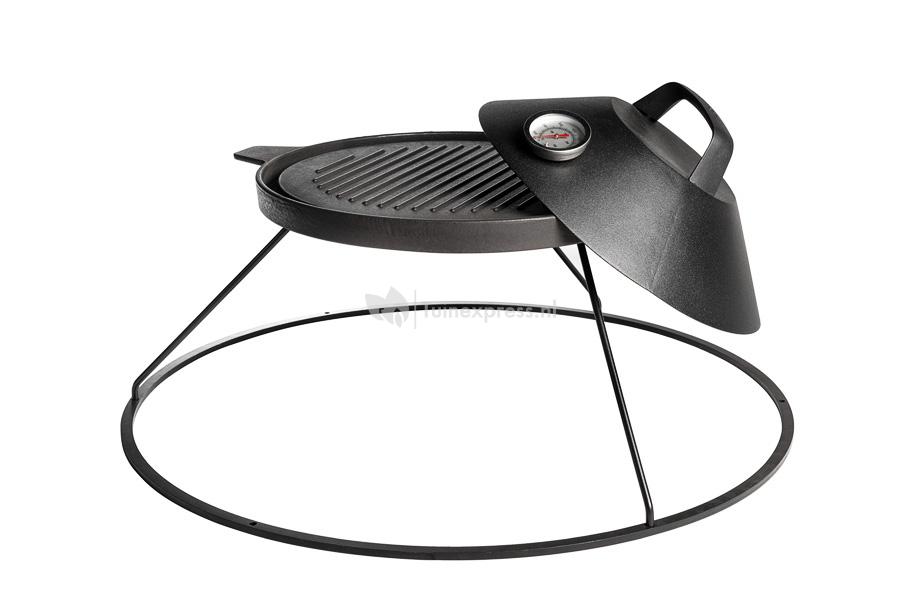 De grillplaat plaatst u eenvoudig rondom uw gashaard. Voordat u kunt beginnen met grillen dient u wel de keramische houtblokken van het vuur af te halen. De grillplaat wordt standaard geleverd inclusief statief, deksel en thermometer. De grillplaat is geschikt voor alle Cocoon vuurtafels behalve voor de vuurtafel vierkant klein, tafelhaard, en de losse inbouwbrander.