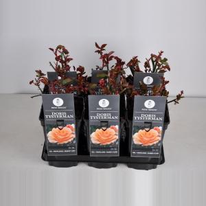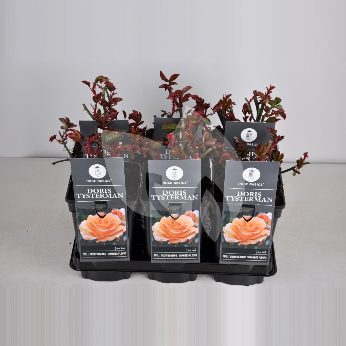 De oranje bloemen van Doris Tijsterman brengen een vrolijke noot in uw tuin. De grootbloemige roos heeft een klassiek uiterlijk met een grote, licht geurende, volle bloem. Deze bossige roos wordt 80-100 cm hoog. De lange bloeiperiode en de prachtige bloemen maken een grootbloemige roos een zeer geliefde tuinplant.