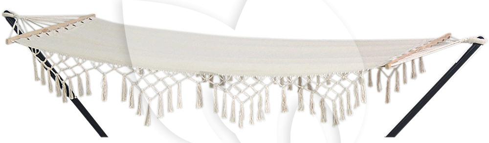 Als u op zoek bent naar een sierlijke hangmat waar u heerlijk in kunt relaxen, dan is de hangmat Macrame een absolute aanrader. Heerlijk relaxen in de tuin met een boek of een tijdschrift, even een dutje doen of bijkomen na een drukke dag, alles is mogelijk in deze hangmat! De hangmat is gemaakt van 50% katoen en 50% polyester en zorgt ervoor dat u optimaal kunt ontspannen in de hangmat. Door de sierlijke rand is de hangmat niet alleen zeer comfortabel, maar ook een prachtige aanwinst voor iedere tuin. De stevige hangmat heeft door de stevige koorden een maximaal draaggewicht van 120 kg en is 200 centimeter lang.