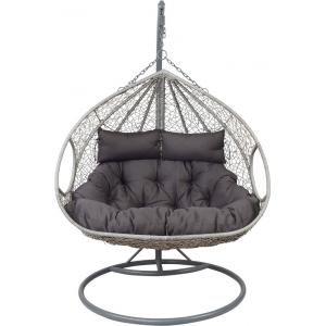 Deze indrukwekkende hangstoel bewijst dat een stoel niet altijd op de grond hoeft te staan. De stoel is bevestigd aan een standaard zodat u deze niet meer zelf aan het plafond hoeft te bevestigen maar dat u toch van de voordelen van een hangstoel kunt genieten. De ronde vorm van de hangstoel in combinatie met de comfortabele kussens zorgen voor een ultiem comfort waar u optimaal kunt ontspannen. De hangstoel biedt plaats aan twee personen, zo kunt u heerlijk samen genieten!