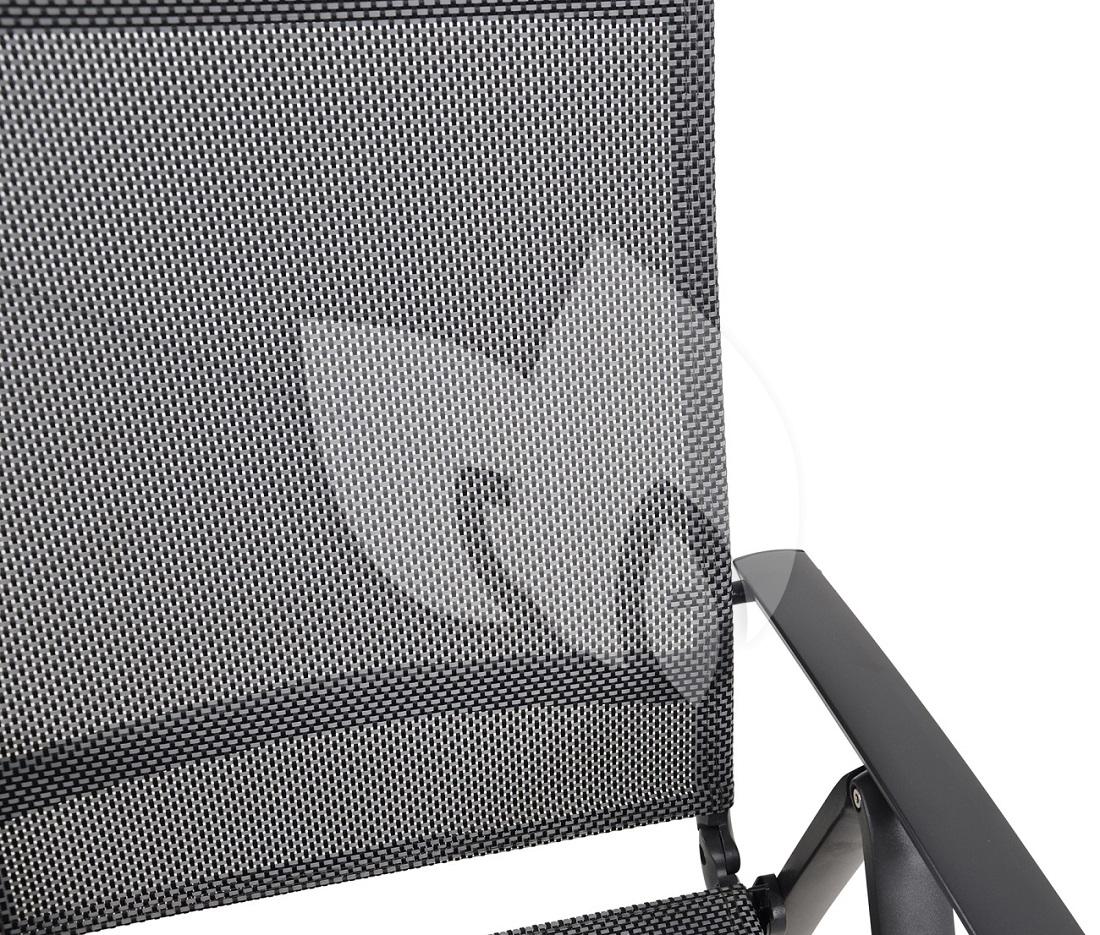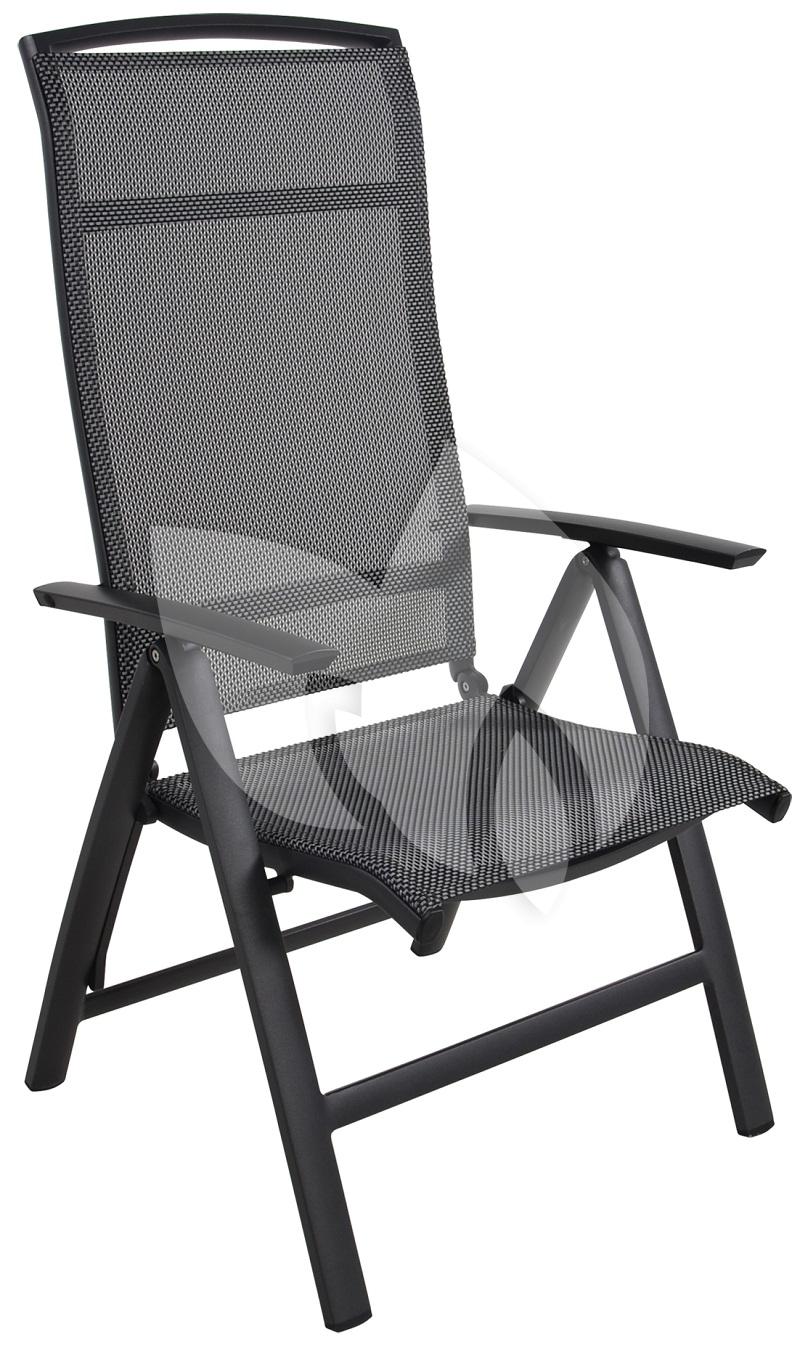 De donkergrijze Hera Standenstoel klapstoel is een tuinstoel met een door middel van de armleuningen verstelbare rugleuning. Het lichtgewicht aluminium frame is afgewerkt met een antraciet poedercoating met een matte finish. De zitting en de rugleuning zijn bespannen met een weer- en UV-bestendige stof van outdoor kwaliteit.