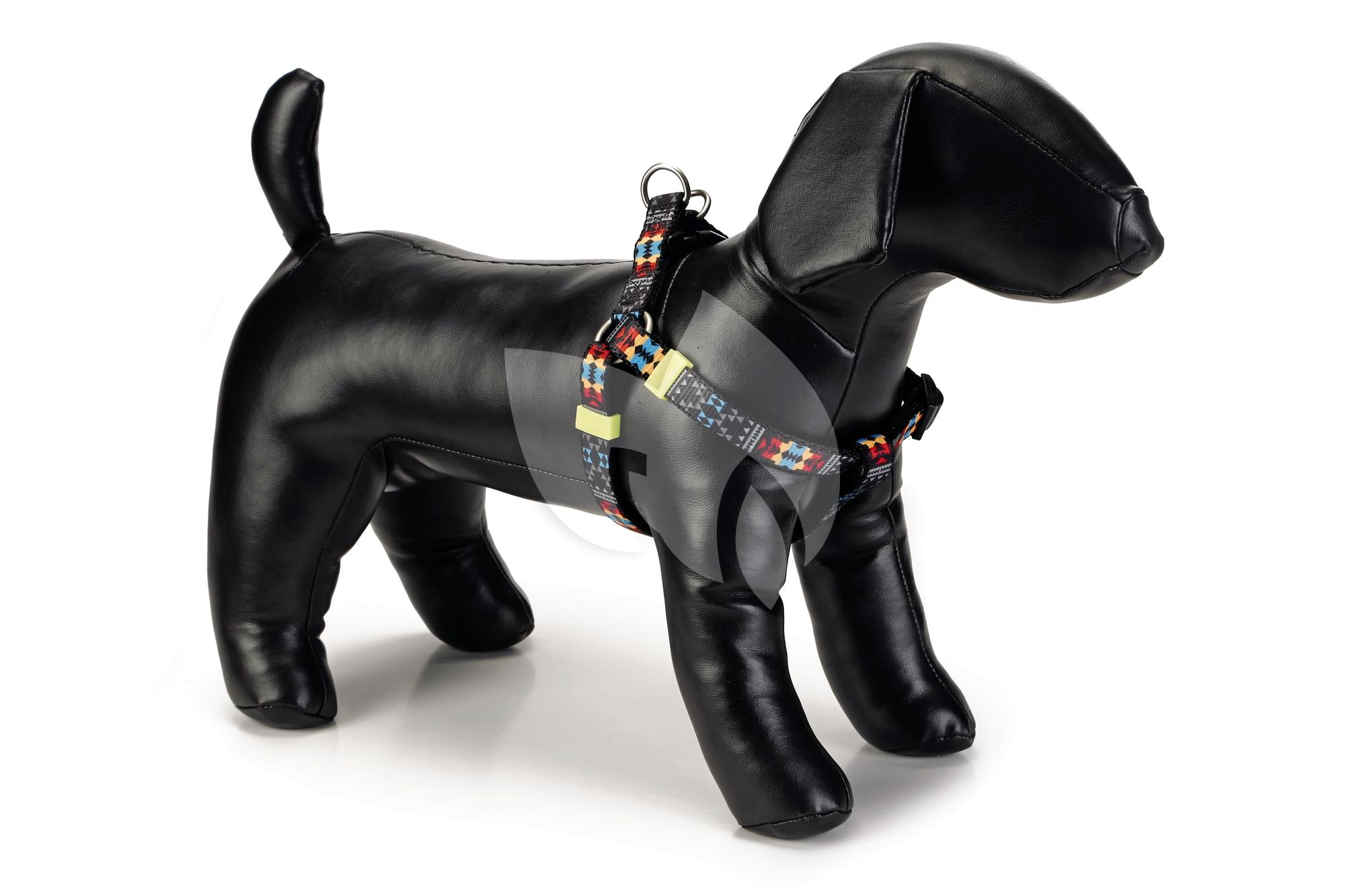 Een vrolijk Beeztees Mucadi hondentuig speciaal voor jouw hond! Dit kleurrijke en effectieve hondentuig is verstelbaar en is gemakkelijk om te doen bij jouw hond. Jouw hond kan met zijn voorpoten in het borsttuig stappen, waarna het door middel van een kliksluiting is vast te maken. Dit hondentuig is voorzien van een kleurrijk motief en heeft een soort rubberen gespjes, welke zorgen voor een leuk accent. Verschillende hondenriemen kunnen worden bevestigd aan dit hondentuig, waarna je er lekker samen op uit kan gaan met je maatje! Leuk detail: er is een bijpassende Beeztees Mucadi hondenriem beschikbaar! - Gemaakt van nylon - Te combineren met verschillende looplijnen - Verkrijgbaar in 4 maten Afmetingen: - 26-40 cm x 10 mm - 35-60 cm x 15 mm - 46-75 cm x 20 mm - 60-100 cm x 25 mm