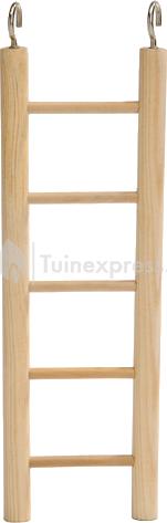 Een houten ladder met voor uw vogel waarop uw vogel heerlijk kan klimmen en klauteren. Makkelijk te bevestigen door de 2 metalen haken aan de bovenzijde van de ladder.
