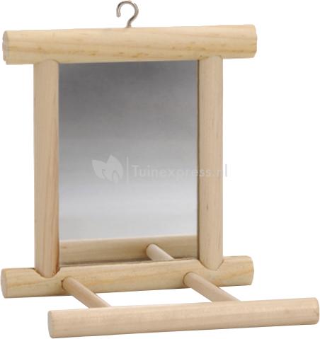 Deze houten landsiegel is een leuke aanwinst voor in de vogelkooi. Een spiegel met aan de voorzijde een landgedeelte voor uw vogel. Voorzien van een metalen ophanghaak aan de bovenzijde.