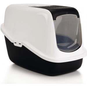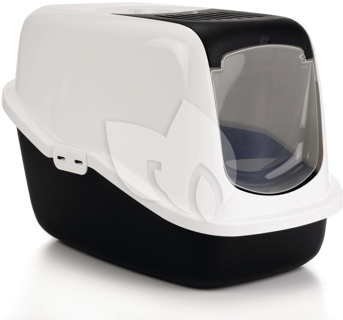 Een mooigevormde kattenbak in een modieuze kleurstelling. Doordat het deurtje samen met het binnenste gedeelte van de bovenzijde in een handomdraai los te klikken is hoeft u niet meer de complete bovenzijde van de onderbak los te maken om deze schoon te maken. Het los geklikte gedeelte kunt u omhoog duwen zodat u er makkelijk bij kunt. Kleur onderbak: glanzend zwart, kleur bovenzijde: glanzend wit met een zwart middenstuk.