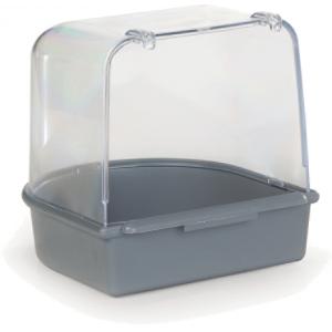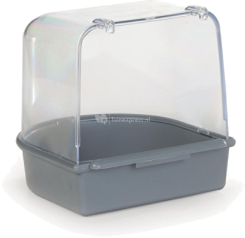 Een plastic badhuisje, recht model. Makkelijk aan de kooi te bevestigen. Uw vogel is klaar om te gaan badderen. Kleur: grijs.