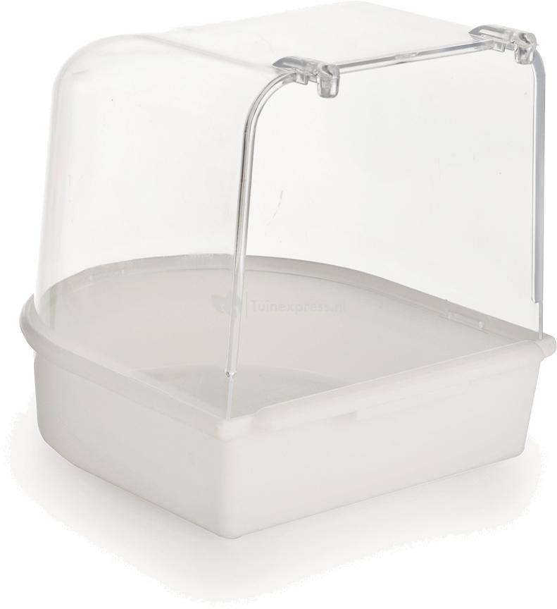 Een plastic badhuisje, recht model. Makkelijk aan de kooi te bevestigen. Uw vogel is klaar om te gaan badderen. Kleur: wit.