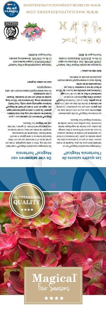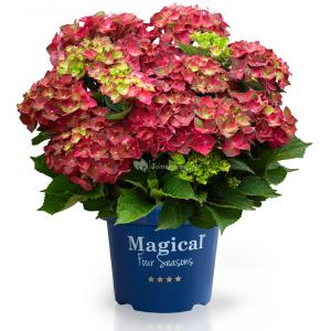 De Magical hortensia hoeft u in principe niet te snoeien. Vroeg in het voorjaar is de perfecte tijd om de uitgebloeide bloemen weg tot net boven de nieuwe knoppen. De oude bloemen hebben al die tijd gediend als bescherming voor de nieuwe knoppen. Hortensia's hebben tijdens warme periodes extra water nodig; geef ze liever enkele dagen per week veel water dan elke dag een beetje. Heeft u een blauwbloemige hortensia? Voeg dan tuinturf toe aan uw tuinaarde om de blauwe bloemkleur te behouden. Wanneer de grond onvoldoende zuur is zal de blauwe kleur van de bloemen afnemen of roze kleuren.