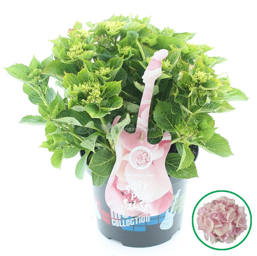Een mooie intens roze hortensia die tot de Music Collection behoort. Dit ras staat voor een rijke, langdurige bloei in de meest mooie, intense kleuren die tevens onderling goed te combineren zijn. De Soft Pink Salsa is een romantisch gekleurde plant die prachtig combineert met wit. Uw terras krijgt een heel andere look door een of meerdere van deze prachtige hortensia’s te plaatsen.
