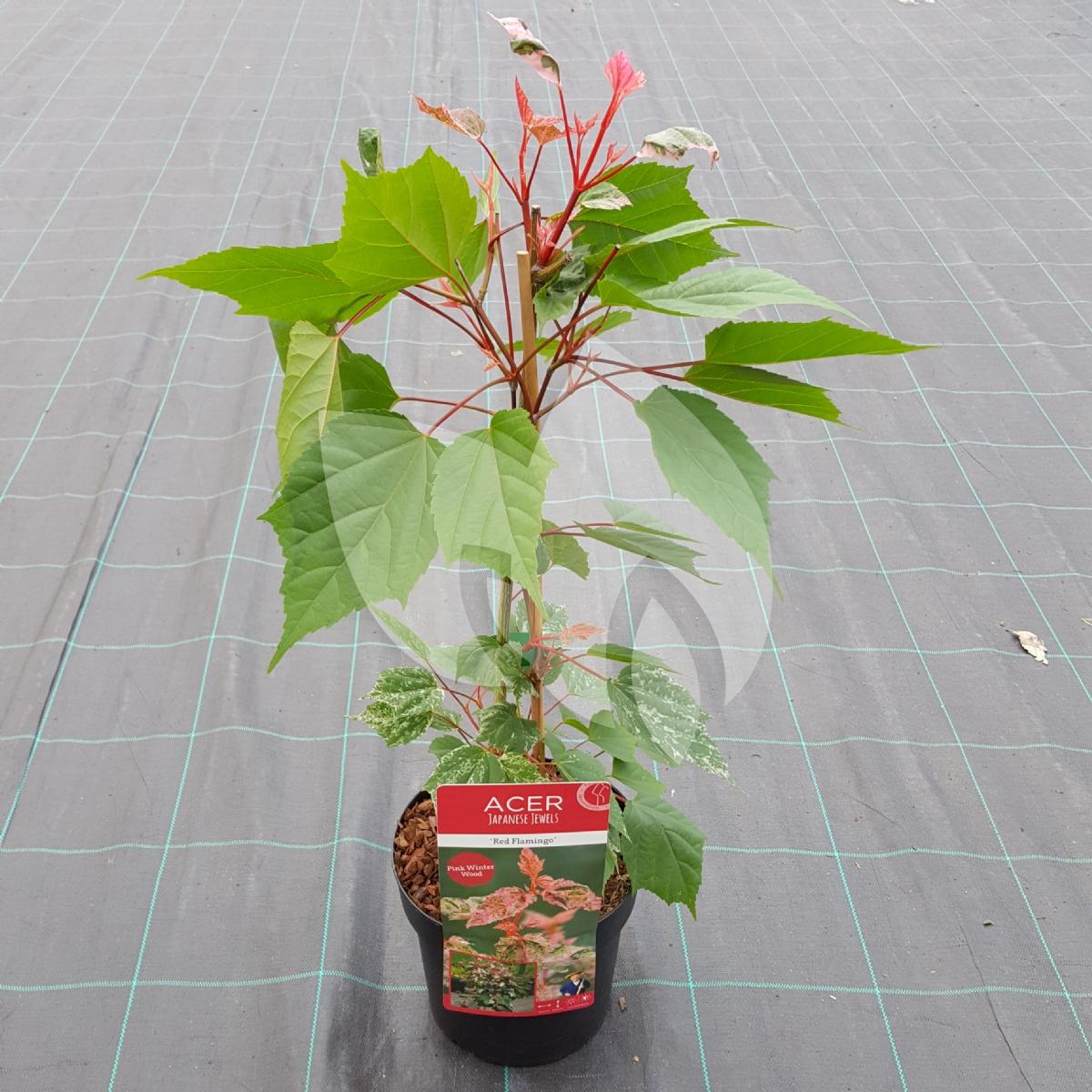 Deze bontbladige Japanse esdoorn is een klein blijvende heester die een hoogte van maximaal 3m bereikt. Deze prachtige plant is een eyecatcher in iedere tuin. De “Red Flamingo” dankt zijn naam aan zijn rode twijgen waar een bont blad aan siert in roze tinten. In de zomer zal het blad meer groen kleuren met roze vlekken en in het najaar kleurt het blad meer richting rood. Een bijzonder kleurenspel het gehele jaar door, want zelfs in de winter geeft de plant een prachtig rood silhouet. Geef de Japanse esdoorn een mooie plaats in uw tuin en geniet van vele tinten roze!