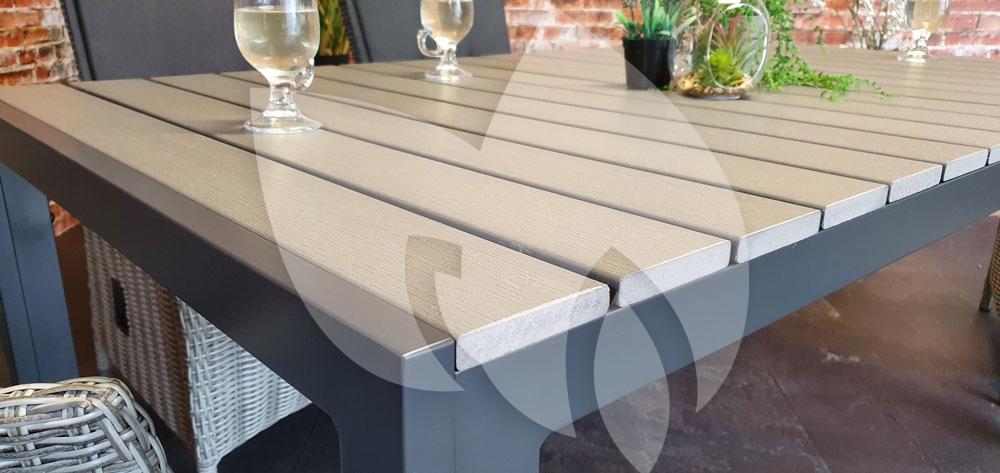 Het uitzoeken van een tuintafel is zeker niet gemakkelijk, al is de keuze makkelijk gemaakt wanneer je de Jersey tafel gezien hebt. Dit product heeft een tafelblad wat gemaakt is van polywood, wat het een gave look geeft. Polywood kan net zoals hout gaan werken en daardoor na enige tijd wat onregelmatigheden gaan vertonen. Dit is waarom wij bij elk polywood bevattend product een polywood beschermer aanraden. Door het aanbrengen van een polywood beschermer zorg je ervoor dat je tuintafel zo lang mogelijk in de perfecte staat blijft.