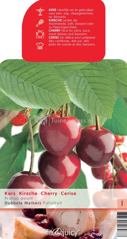 Deze kersenboom staat op een Gisela 5 onderstam. Dit houdt in dat de boom een laagstam is, waardoor u makkelijker kunt werken met de boom en dat de boom tevens geschikt is voor de kleinere tuinen. Daarnaast zorgt de onderstam voor een toename van 30% in productie. De Dubbele Meikers is een goede groeier en makkelijk te telen. De Dubbele Meikers is zelfbestuivend maar om de bestuiving te bevorderen plaatst u het beste een kersenboom van een ander ras met dezelfde bloeiperiode. U kunt dan genieten van de zoetzure zachte kersen vanaf juni.
