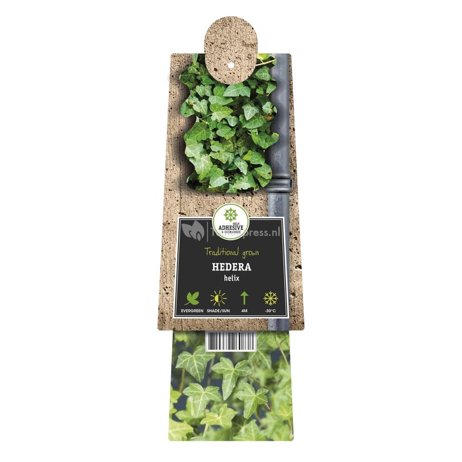 Kleinbladige klimop is een sterke klimmer, maar zal wanneer hij niet meer voldoende klimondersteuning vindt, verder gaan als bodembedekker. De klimop is bijzonder winterhard en door zijn snelle groei prima te gebruiken als begroeiing van een haag. Het kleine blad is donkergroen van kleur en glanzend. In het najaar vormt de klimop niet eetbare paarse besjes. Deze klimopsoort is een vrij algemene soort die men ook wel in de natuur tegen kan komen, maar wanneer u op zoek bent naar een sterkte, volledig groene klimop, dan is deze helix ideaal voor u!