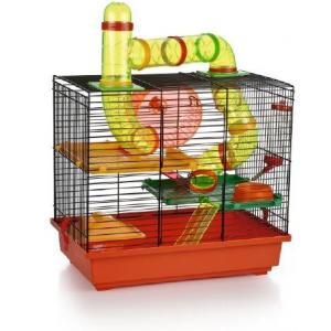 Een moderne knaagdierenkooi genaamd Rocky. Deze kooi valt op door zijn frisse kleurtjes. Inclusief meerdere platforms, trapje, buizen, looprad, drinkflesje en voederbakje. Ook wordt er een spacestation meegeleverd die u eventueel tussen de buizen kunt plaatsen. Dit station dient ervoor dat uw knaagdier heerlijk kan gaan liggen slapen.